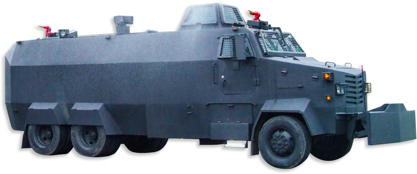 Water cannon is a device that shoots a high-velocity stream of water. Typically, a water cannon can deliver a large volume of water, often over dozens of meters. They are used in firefighting, large vehicle washing, riot control, and mining. Most water cannons fall under the category of a fire monitor. The Armored Water Cannon holds a 14,000 Lt corrosion free water tank with high pressure water jet systems with a 65 m throw range. The vehicle also features a water spray system to protect the roof, cabin sides, tire shield and under body from various burning objects, Molotov cocktails or other dangerous liquids and gases. The armored water cannon comes equipped with a state of the art Command Control System that holds an integration of surveillance cameras, night vision capabilities, PA system with strobe lights, roof monitors as well as an integrated fire suppression system. Armored Water Cannon offers a comfortable, reliable and efficient solution for matters of crowd control, rioting and the preserving of peace and order.